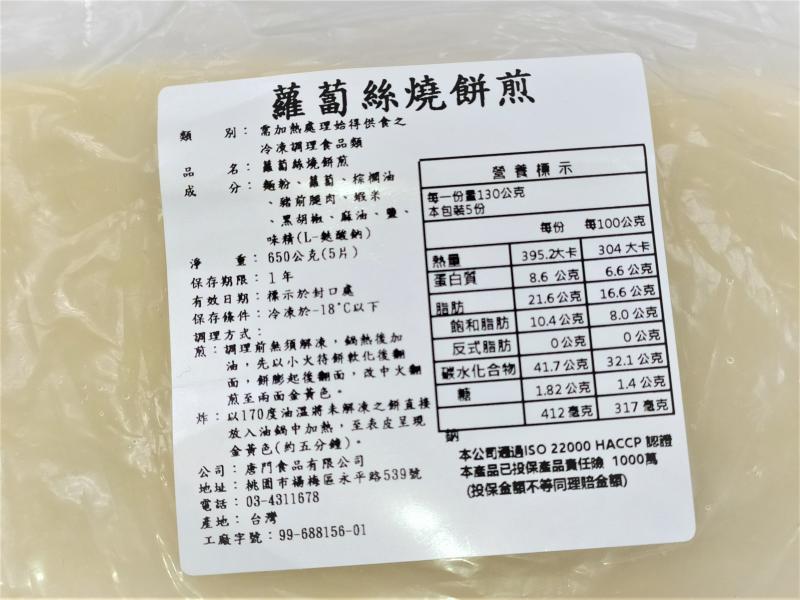 【唐門】蘿蔔絲燒餅煎5片*20包/箱